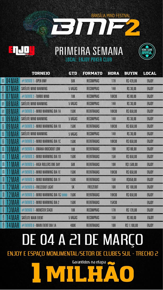 Com organização do Enjoy Poker Club e do Home Game Brasil, o evento foi separado em 2 semanas de intensa programação: