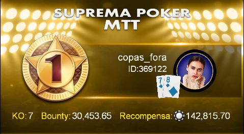 Destaque para o nick “copas_fora” que derrotou o nick “chatopracrlho” no heads-up e ficou com a bolada de R$ 142.815,70 + R$ 30.453,65 de bounties, totalizando um valor de R$ 173.629,35.