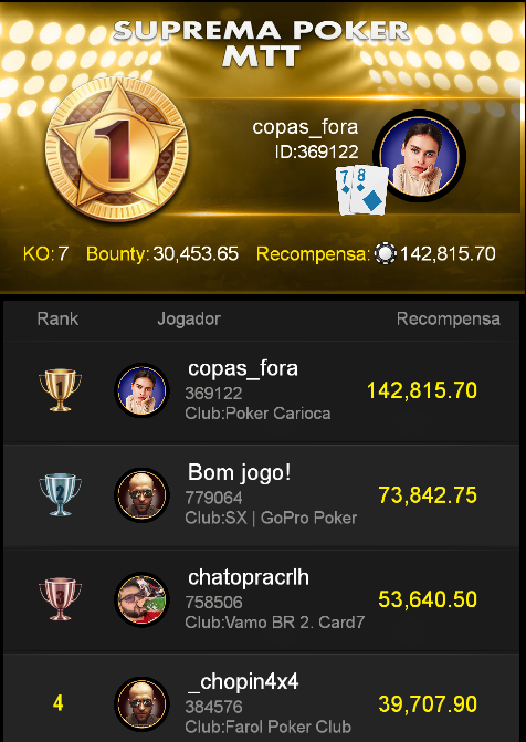 Lembrando que você pode jogar dentro do Clube Brasil Poker com ID: 618906 no aplicativo da  Suprema Poker.