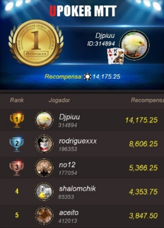 Derrotando “Rodriguexx” no heads-up o player carioca com seu nick inconfundível “Djpiuu”, faturou mais R$ 14.175 para seu bankroll e conquistou mais um título para o currículo.