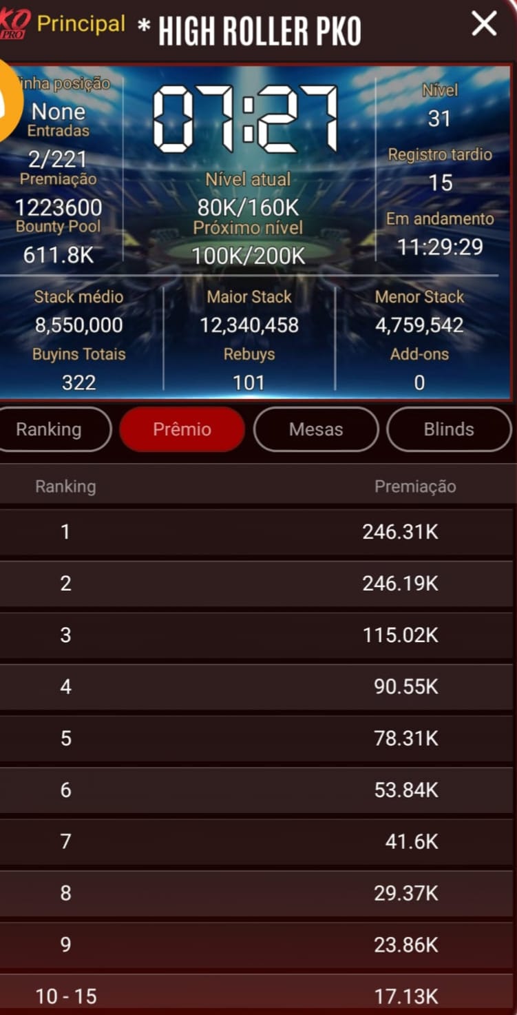 Como o torneio era em PKO o vice-campeão também levou a premiação igual a do primeiro colocado, a disputa ficou então pelo grande prêmio envolvendo os bounties.